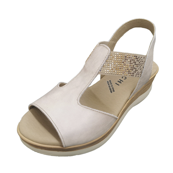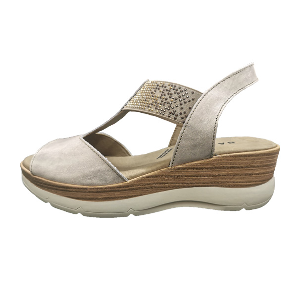 * Sandàlia de dona fabricada amb pell amb un acabat efecte perla i exterior de microfibra absorbent.
