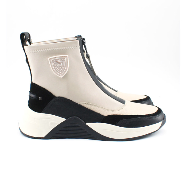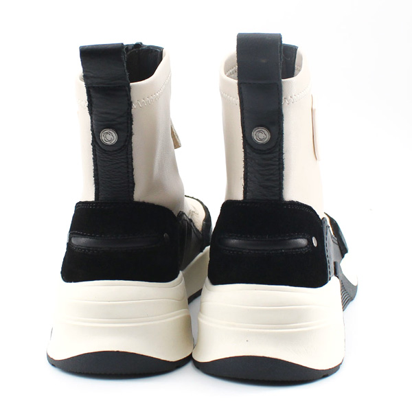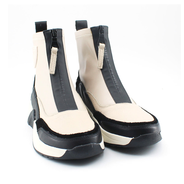 * Botí per a dona fabricat amb pell amb diferentes textures. La part superior del botí és de polipell elàstica.