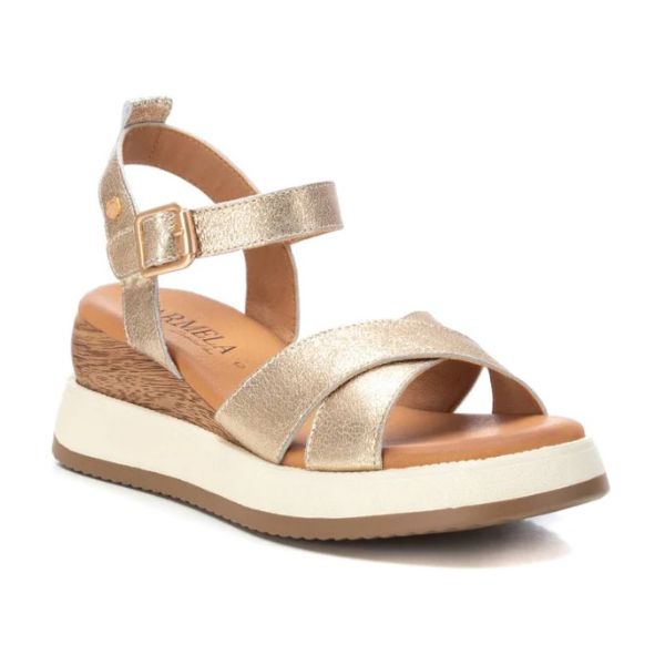 * Cunya dividida amb dues parts, una amb color cru amb sola negra i l'altra amb un disseny imitació a fusta. l'altura del taló és de 6'5 cm i la plataforma és de 3 cm.