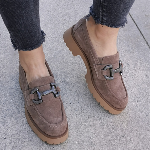 * Mocasí per a dona fabricat amb pell serratge de gran qualitat.