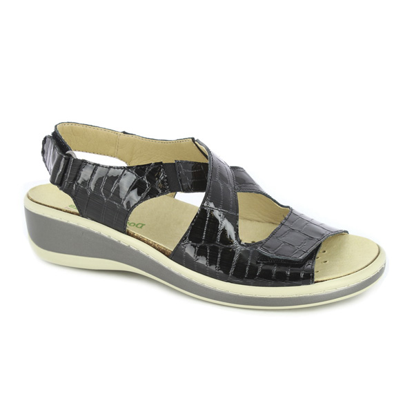 • Sandalia de dona fabricada amb pell de xarol amb textura de coco.