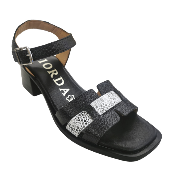 * Sandalia de pell amb una elegant pala negra que recull molt bé el peu i amb un detall animal print.