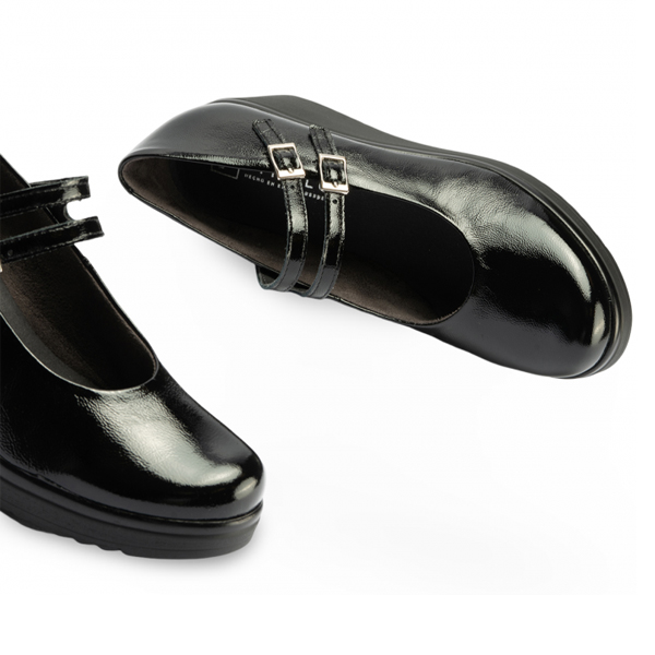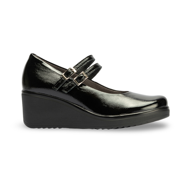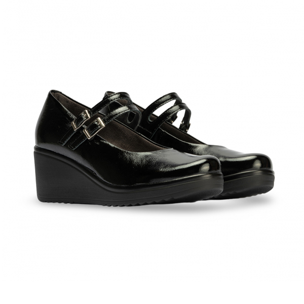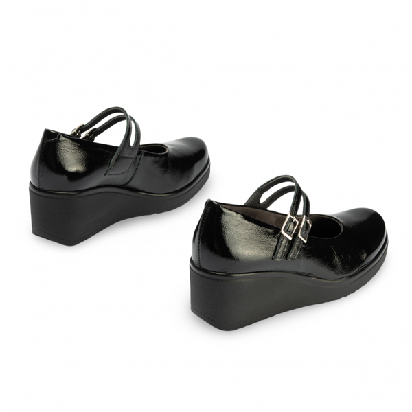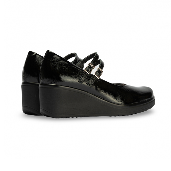* Sabata per a dona d'estil “Mercedetes”, però amb un toc més modern gràcies a la cunya tota d'una peça i a les dues sivelles que li aporten estil a part de funcionalitat.