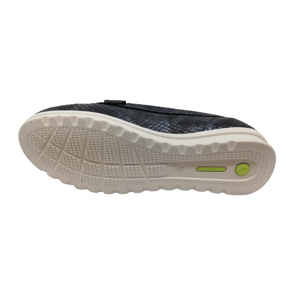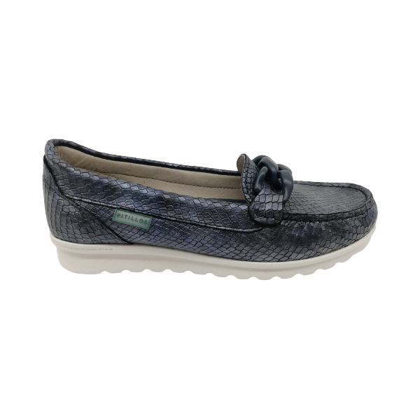 * Mocasí per a dona fabricat amb pell imitació a reptil.