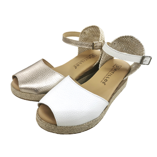* Sandalia tipus espardenya, fabricada amb pell amb el taló de teixit trenat i planta de microfibra absorbent.