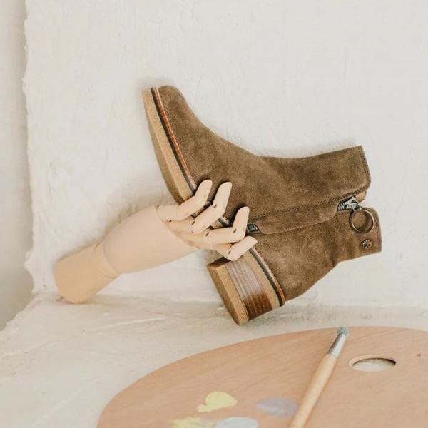 * Cremallera exterior per facilitar el calç, també és part és part fundamental del disseny, aportant un toc original i decoratiu.