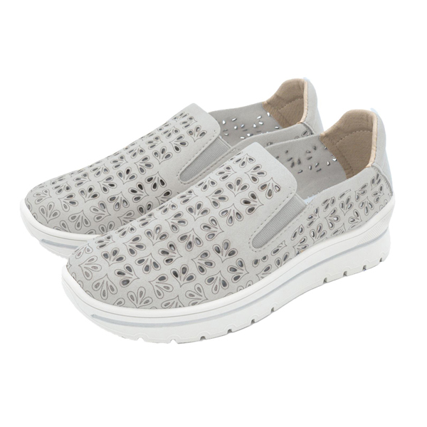 * Calçat per a dona fabricat amb teixit sintètic molt suau i calat amb un disseny geomètric per tenir el peu més fresc i que transpiri.