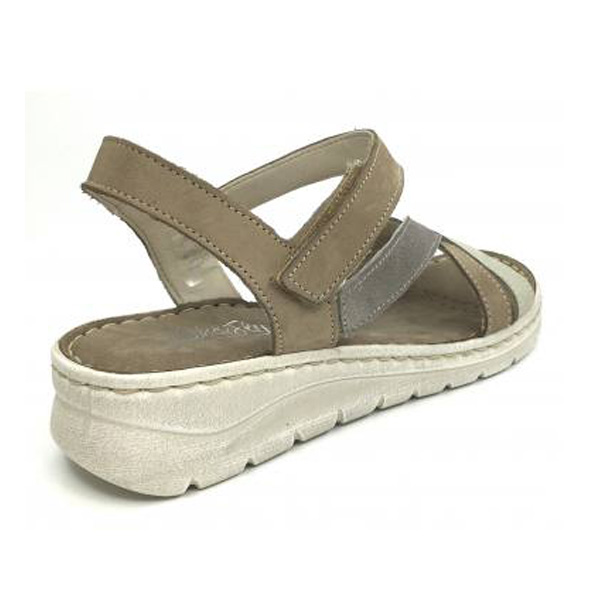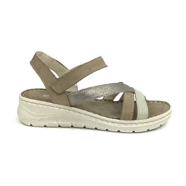 * Sandalia de pell de nobuck amb un toc en una tira metal.litzada.
