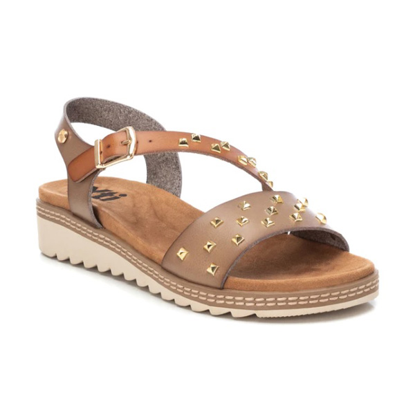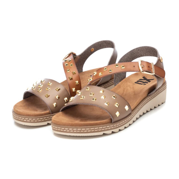 * Sandalia per a dona fabricada amb l'exterior sintètic imitació a pell i la planta de teixit.