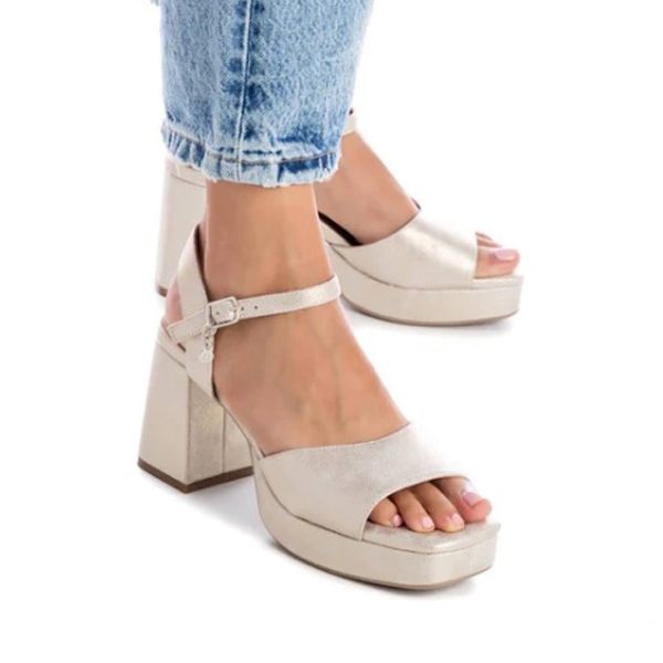 * Sandàlia dona fabricada amb materials sintètics i un acabat metal.litzat.