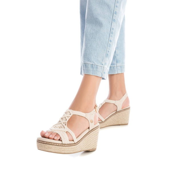 * Sandalia de dona fabricada en teixit d'estil macramé.