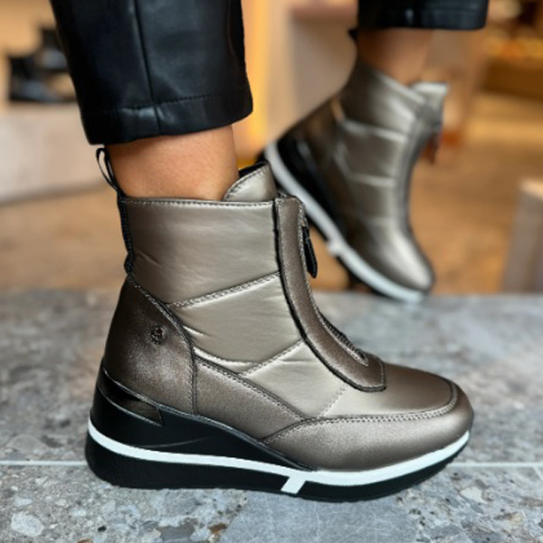 * Botí per a dona fabricat amb teixit i polipell, tot amb una tonalitat metal.litzada.