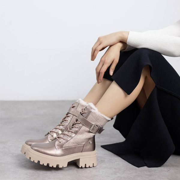 * Forro interior de teixit i amb la part de dalt d'un pel més llarg i suau, donant així un sutil toc sofisticat.